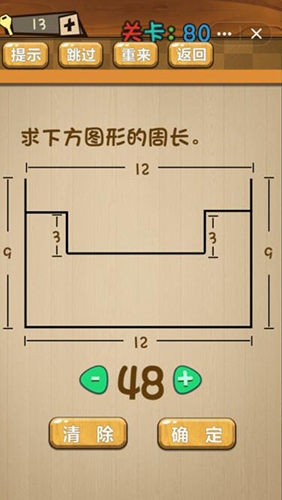 神脑洞的第80关需要玩家去求出图形的边长,很多玩家都以为这题有其他的陷阱,其实只是一个简单的计算题而已,那么来看看正确的答案吧。