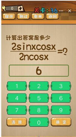 通关答案:6(小提示:不要真的按照sin、cos计算,直接消除上下相同的字母和数字,只剩下six。)