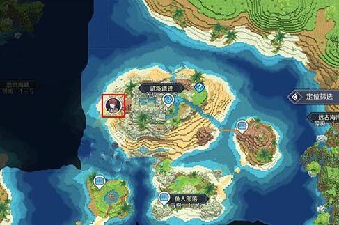 1、具体位置在试炼遗迹海岛左手边。