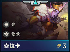 索拉卡是来自巨神峰彼端天界维度的流浪者。她放弃了不朽的神格,保护凡间的种族免遭他们自身暴力本能的伤害。她对自己遇见的每个人都施以同情与仁慈——即使是那些对她心存恶念的人也不例外。虽然索拉卡见证了这世上如此多的苦痛与挣扎,但她依然相信符文之地的人们依然有更多潜力尚未发现。