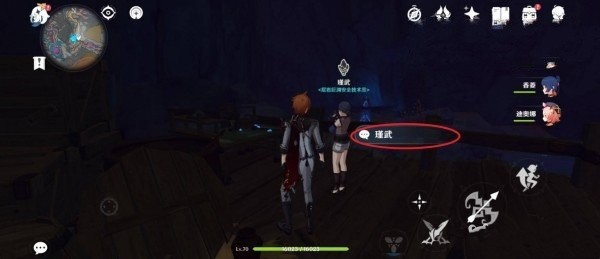 1、首先前往层岩巨渊地下矿区找到NPC瑾武,上前对话。