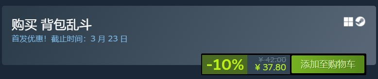 1、背包乱斗目前的价格是37.8元,3月23日后会恢复原价。