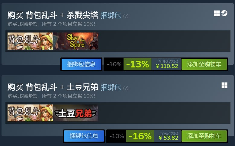 3、大家也可以购买捆绑包,包括和杀戮尖塔的捆绑包、和土豆兄弟的捆绑包。