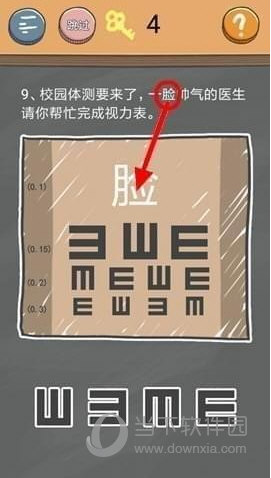 答案:将题目上的【脸】字移到视力表上。