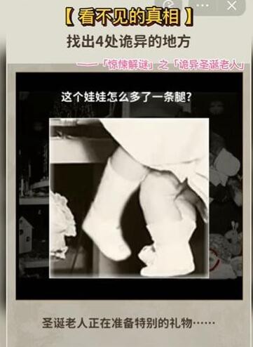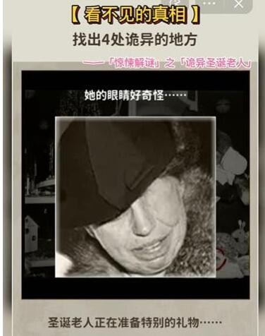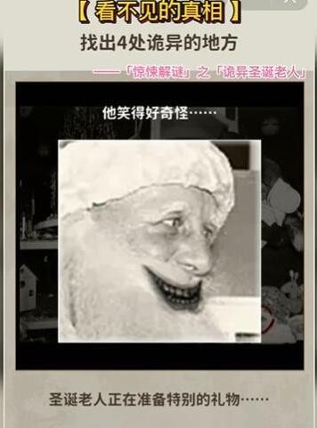 看不见的真相是一款悬疑烧脑小游戏,主要考验玩家的眼力和推理能力,我们需要根据提示和场景找出不合理的地方,发现真相,对于诡异圣诞老人这一关不知道怎么过的小伙伴,赶紧来看看吧!