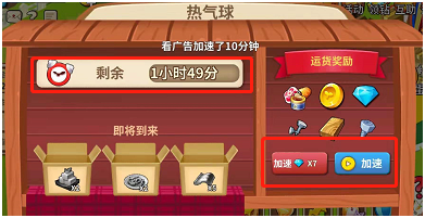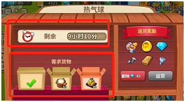 3、热气球任务,那么什么是气球任务呢,任务需要做什么呢,以下标注的就是气球任务呢(被我偷偷装好了一个)。重要的事情说三遍,要注意一下剩余时间,要注意一下剩余时间,要注意一下剩余时间,时间到了,热气球就会自动飞走呢,装好的商品也会被它无情的带走。