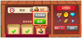 4.要怎么完成呢?准备所需要的商品,点击装货,当然,您可能完成不了,可以点击寻求帮助呢,当三个物品装箱后,可以点击右侧的运货。