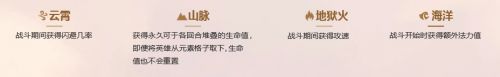 每局元素崛起的游戏都会随机包含一种元素:地狱火,海洋,山脉或云霄。