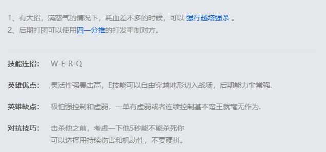 泰达米尔对战斗极度饥渴,他受伤程度越高,攻击力越强。他能通过释放【Q嗜血杀戮】消耗怒气并治疗自己。