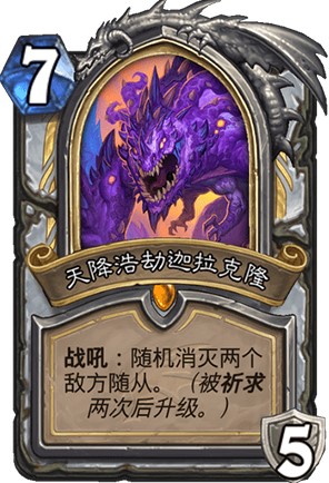 卡牌效果:战吼:一个敌方随从(被祈求两次后升级)。