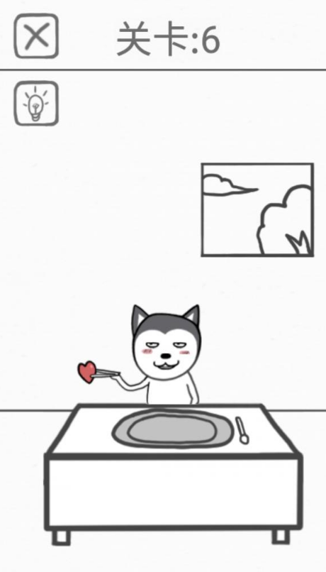 将盘子里所有菜都给哈士奇吃掉,最后会夹到爱心