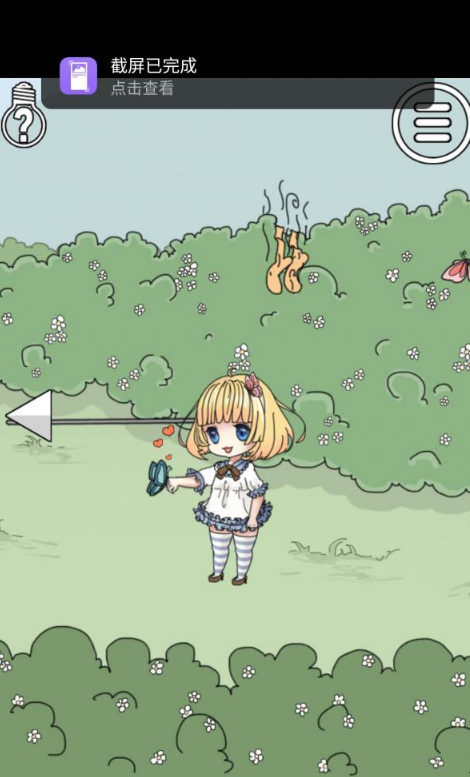 点击远处的风车获得风车给男孩,小女孩头上获得红色蝴蝶,切到右边对女主使用红色蝴蝶