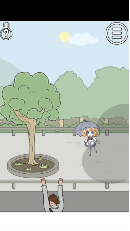 等待气球出现点击获得对女主使用,点击三下树获得雨伞给女主
