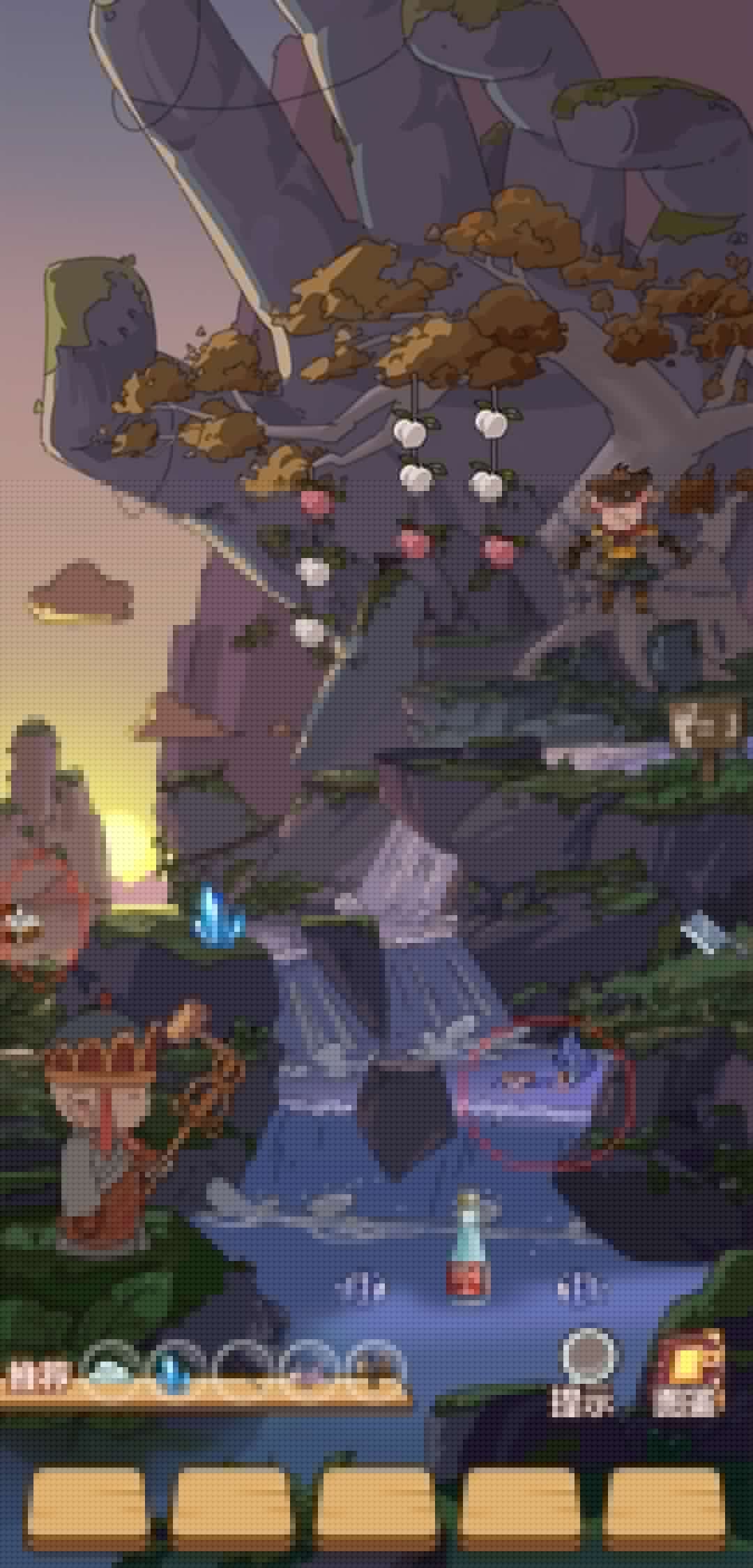 这部分,需要点击两个部分,分别是左侧比较圆润的云彩,右侧的桃子们。