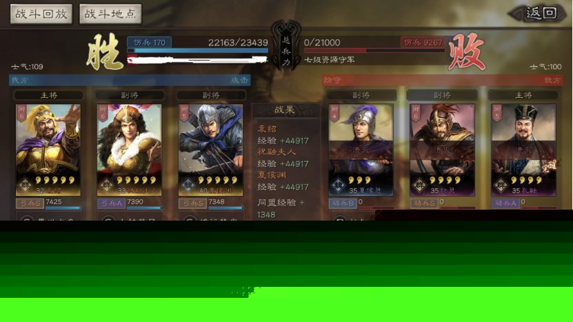我自己所使用的的阵容为袁绍+祝融+夏侯渊,都未觉醒,但是阵容强度已略显威力,打7级地基本没有压力。