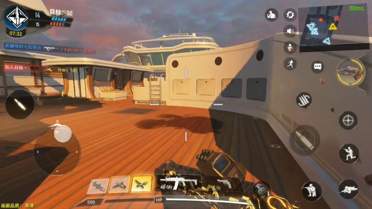 这手游里面加了一个在黑色行动4里那种的大招系统,就是过一段时间就能放个大,把自己的枪变成加特林、喷火器这种东西,看介绍说这种大招总共有七种,里面还有防护盾这种东西。