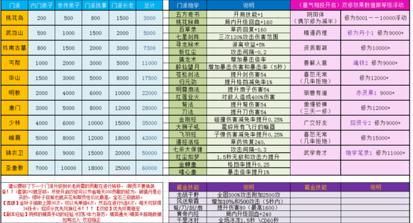 暴走大侠中大家都知道门派有贡献值,但是应该还不清楚各个门派到底需要多少贡献值吧,下面小编就为大家找来了一张图表,相信可以让大家很清楚的了解具体数据,建议收藏保存哦。