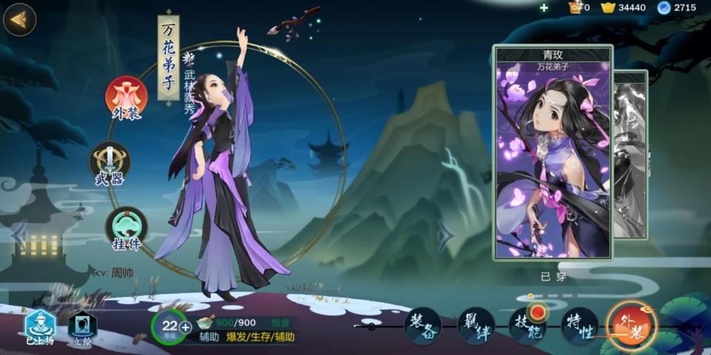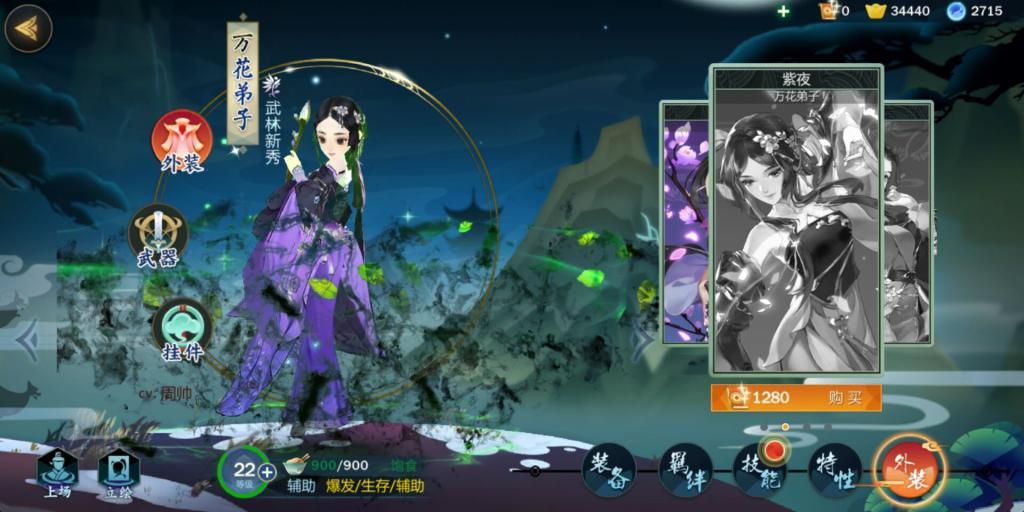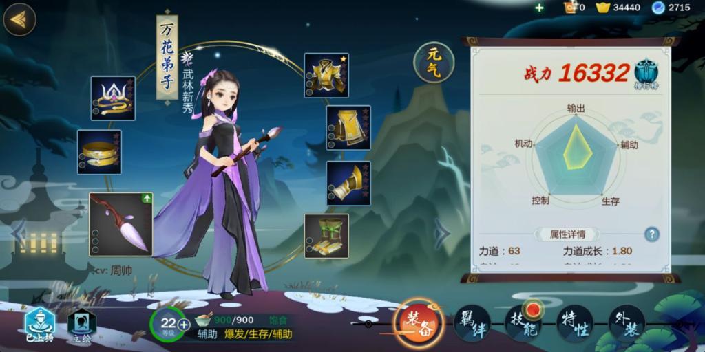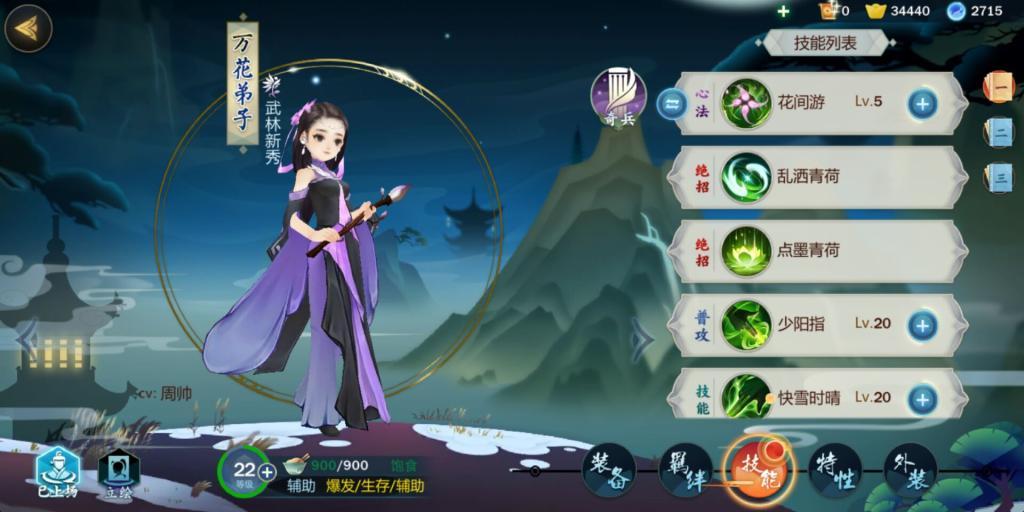 侠客系统点开后可以看到侠客的玩法又分:装备,羁绊,技能,特性,外观。