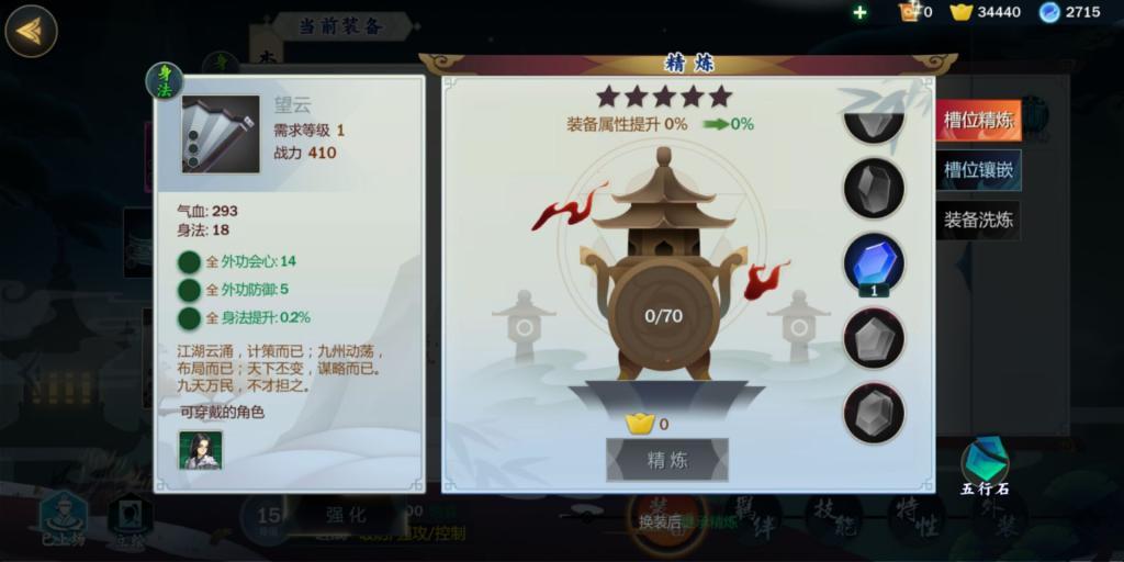 侠客的装备获得办法做任务打怪掉落,装备可以强化,强化又分为槽位精炼,槽位镶嵌,槽位洗炼三种,不知是否是因为等级未到,灵儿的洗炼功能尚未开启。