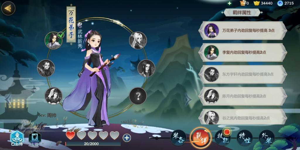 羁绊顾名思义就是指侠客跟侠客之间是否存在着关系,有关系的两人都获得半点亮后就会增加战斗力及特殊属性,所以为了在PVP中更强,大家一定要努力多获得侠客哦!