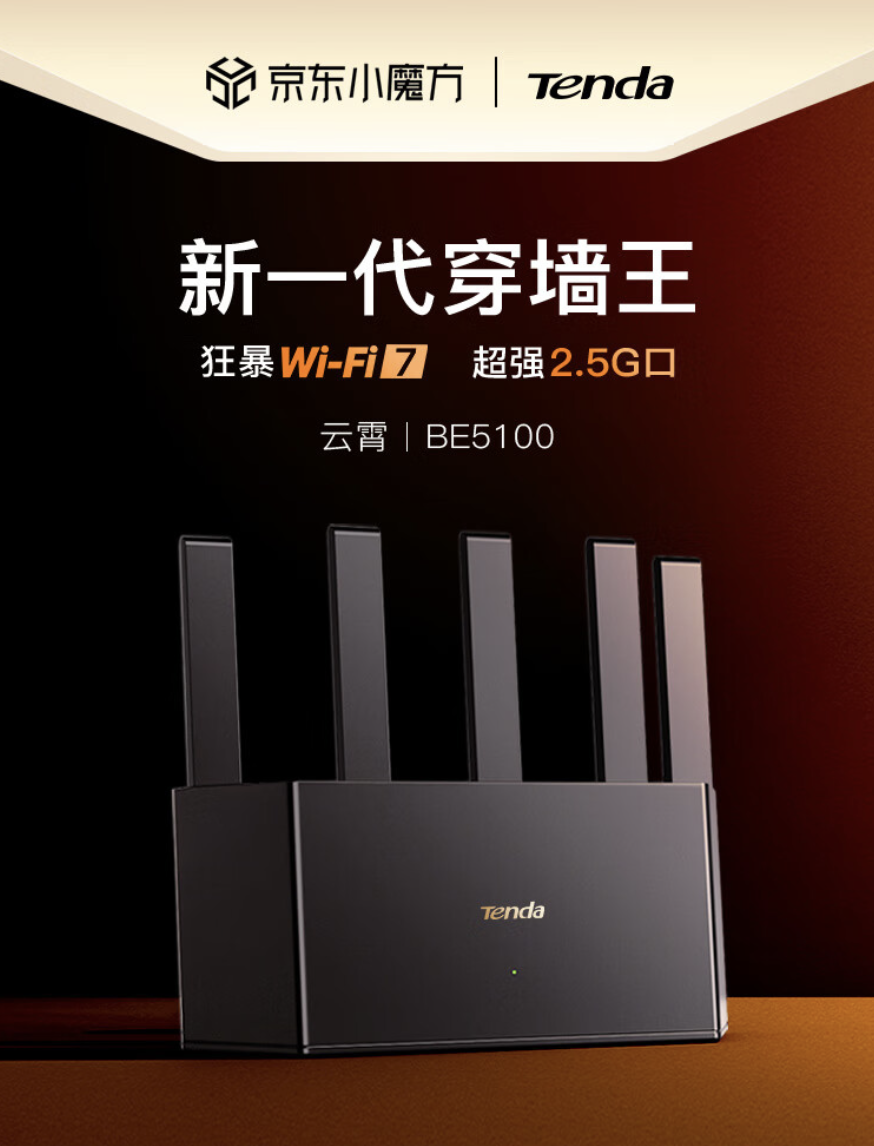 腾达云霄 BE5100 Wi-Fi 7 路由器开售于 2024 年 10 月 21 日,这款路由器主打“5 颗 FEM、NFC 一键联网”,定价 209 元。