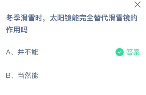 以上就是冬季滑雪时,太阳镜能完全替代滑雪镜的作用吗,支付宝蚂蚁庄园2025年12月12日答案最新,更多精彩内容,请点击关注本站手游网更新!
