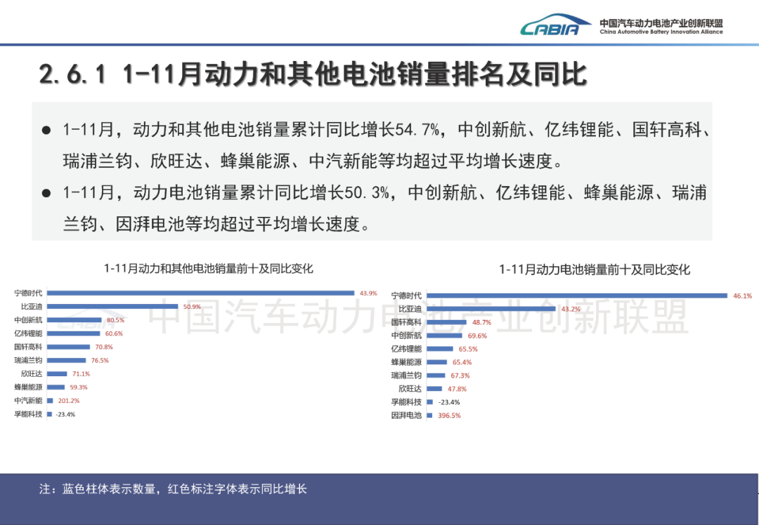 从数据中获悉,11 月我国动力和其他电池销量为 179.4GWh,环比增长 8.1%,同比增长 52.2%。其中,动力电池销量为 134.0GWh,占总销量 74.7%,环比增长 7.8%,同比增长 52.7%;其他电池销量为 45.4GWh,占总销量 25.3%,环比增长 8.9%,同比增长 50.7%。