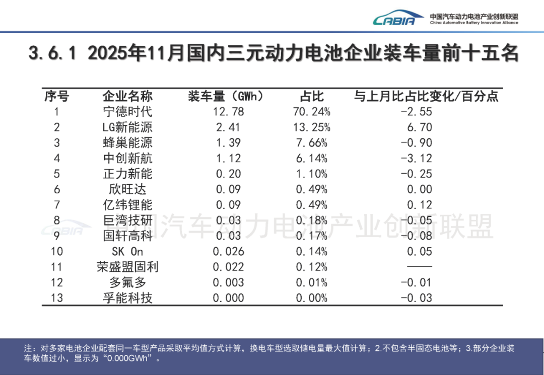 12 月 12 日消息,今天晚间,中国汽车动力电池产业创新联盟发布 2025 年 11 月动力电池月度信息。