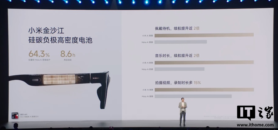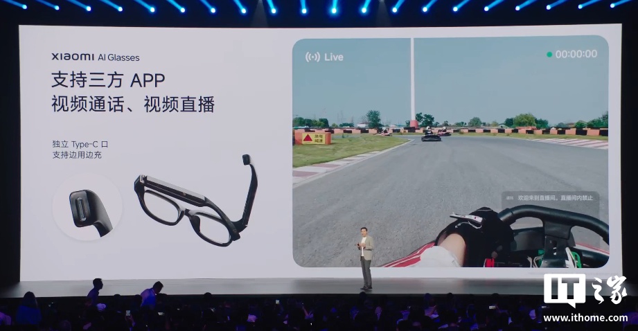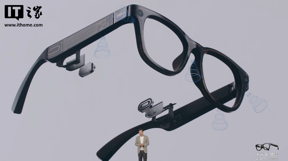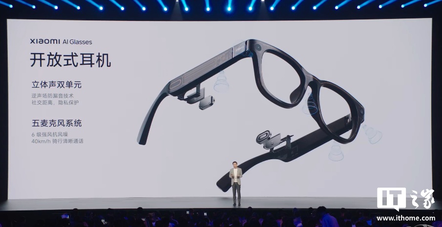 小米 AI 眼镜还搭载开放式耳机,配有立体声双单元、五麦克风系统。