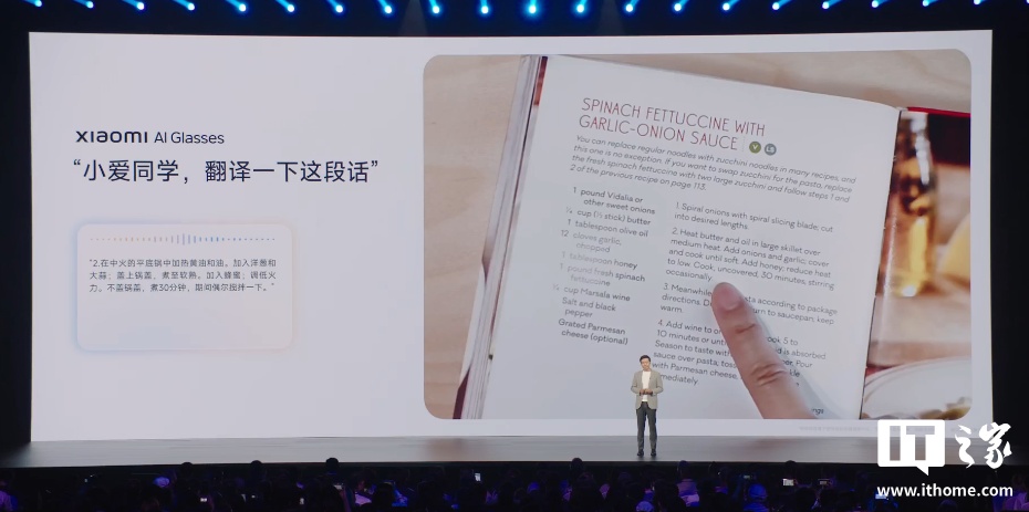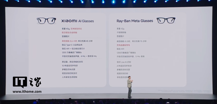 小米 AI 眼镜搭载超级小爱,支持语音拍照、录像,还可以通过摄像头识别物体、翻译文本,以及摄像头扫码支付(需说出“确认支付”)。
