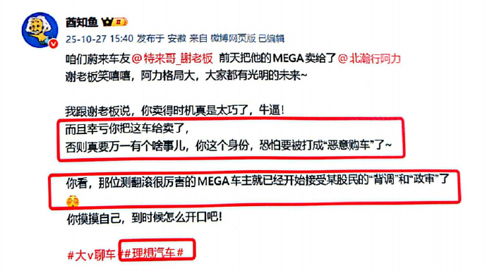 违规言论:你看,那位测翻滚很厉害的 MEGA 车主就已经开始接受某股民的“背调”和“政审”了。