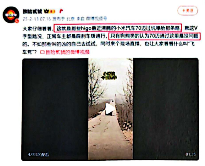 违规言论:正常车主都是采砂池缓慢通行,只有狗熊类的认为 70 迈通过这里是没问题的。不如那些叫的凶的自己去试试,让大家看看什么叫“飞车党”?