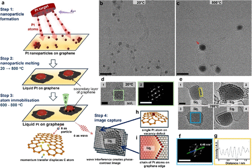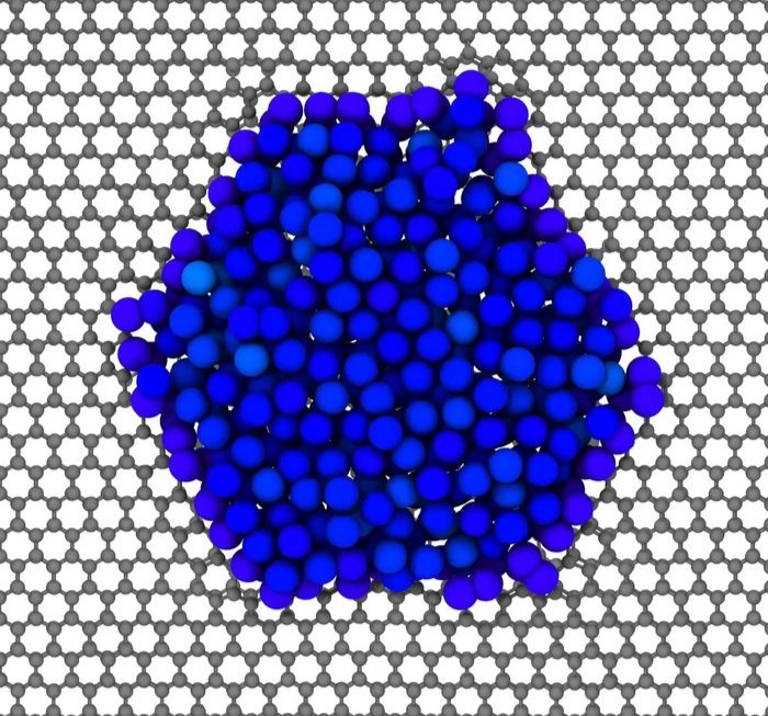 研究人员将铂、金和钯等金属纳米颗粒沉积在原子级厚度的石墨烯基底上,并利用石墨烯作为“加热平台”将颗粒熔化。在高温下,金属原子如预期般开始快速运动。
