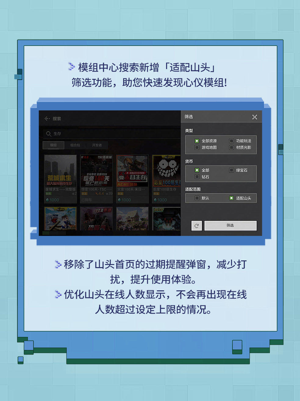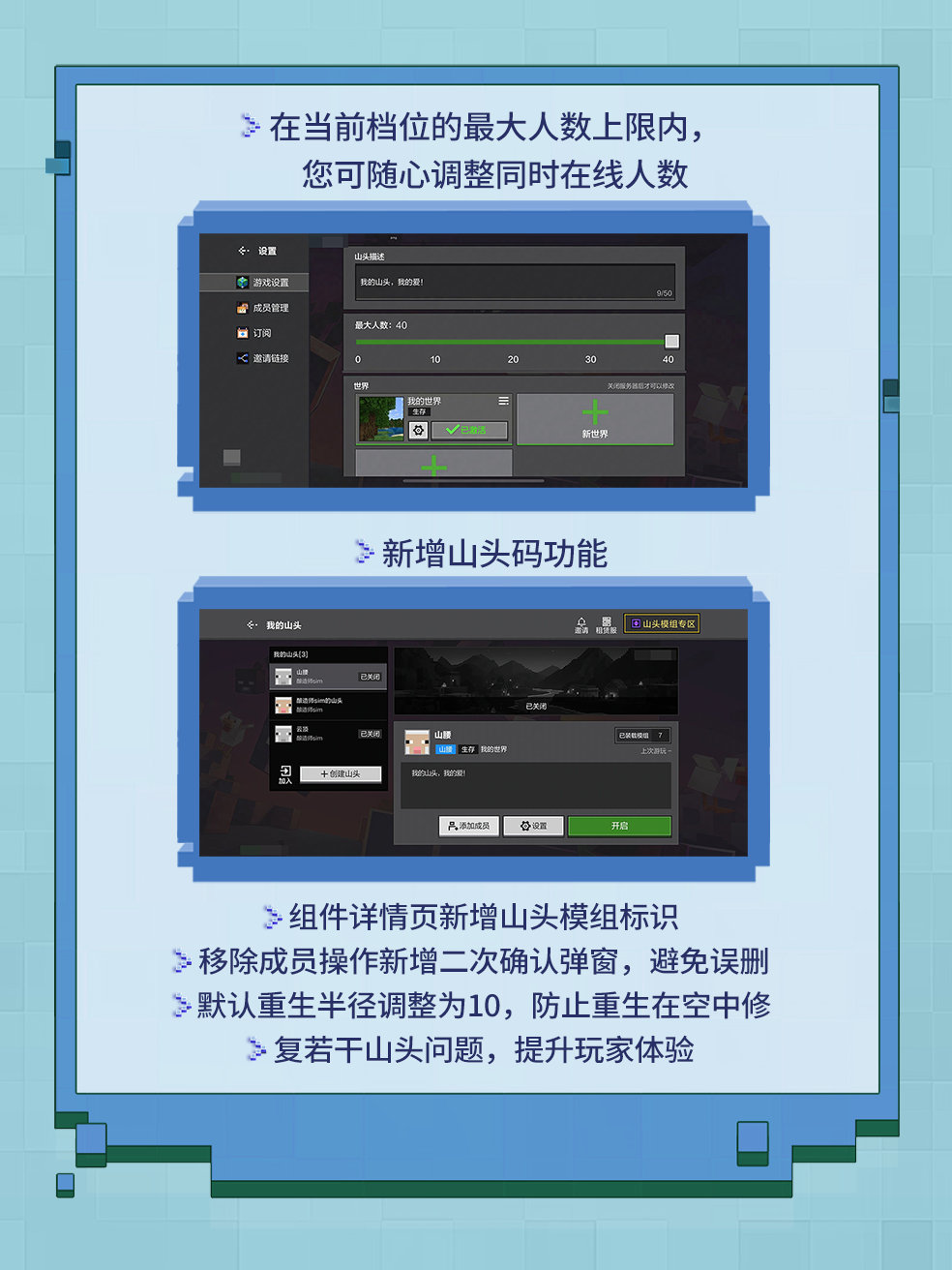 注意到,网易还宣布山头服订阅价格下调;切换山头时新增“获取模组信息”流程,杜绝未下载模组直接进服的情况。