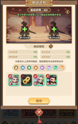 所以玩家在选择助战武将的时候,需要选择那些单次高价值的输出,或者是能够实现强控场,精准补刀的瞬发特性,这样的话才能够起到关键性的作用,因为助战武将在进入战场的时候,他们并不需要任何的触发,就能够实现终极技能,另外,玩家在搭配助战武将的时候,也需要注重整个阵容的具体情况。毕竟在战斗的时候,他属于额外的两名武将,能够让这两名武将加入之后,就可以有效的提升战斗实力。
