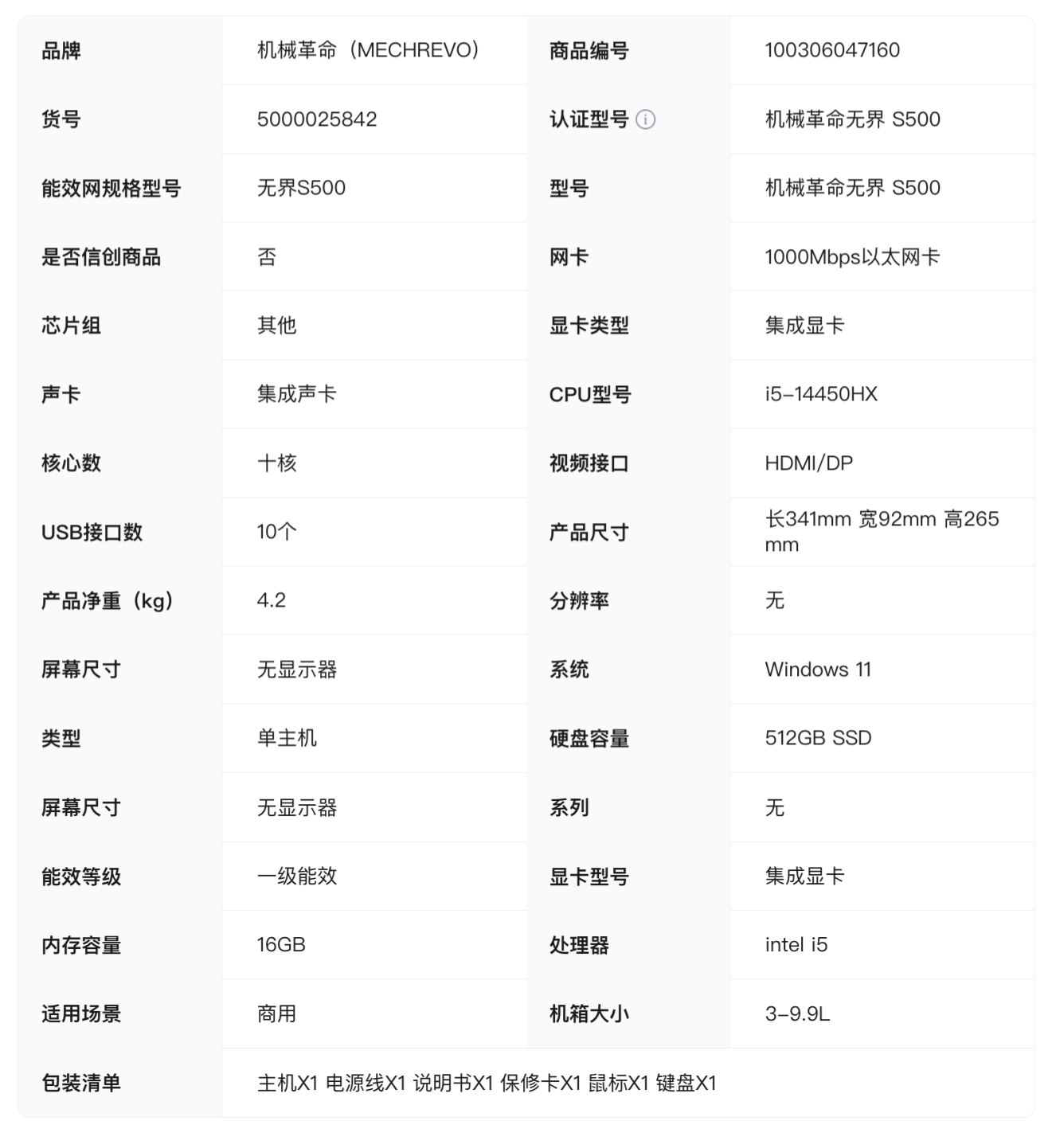 12 月 15 日消息,机械革命无界 S500 办公台式主机现已上架预约,该主机搭载 14 代 i5 处理器、16GB DDR5 内存及 512GB PCIe 4.0 SSD(注:可选 1TB),新品首发价 2499 元,结合国补等优惠后到手 2199 元。