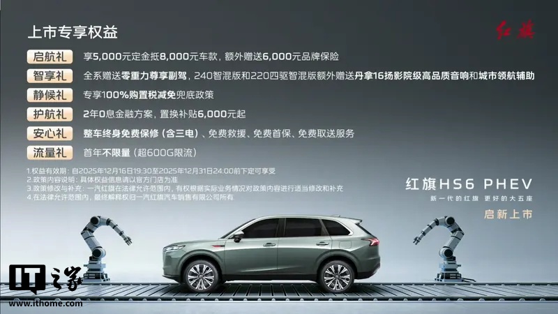 12 月 16 日消息,红旗 HS6 PHEV 车型今日正式上市,售价 17.88 万元起: