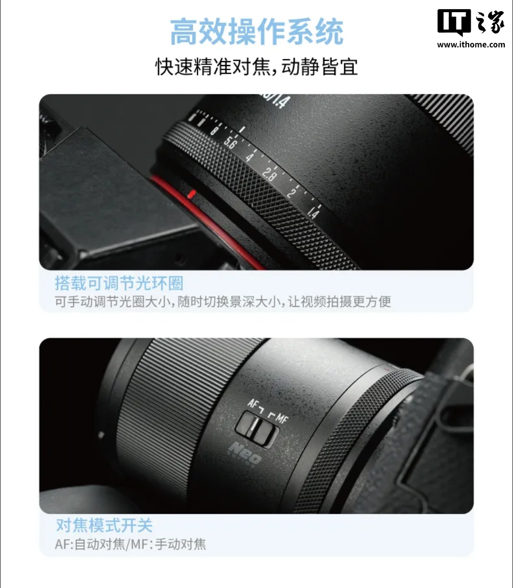 此外,这款镜头拥有索尼 E / 尼康 Z / 富士 X 卡口版本,配备 STM 步进对焦马达,支持脸部、眼部识别对焦,号称“畸变超低、呼吸效应微弱”,镜身上拥有光圈环、对焦模式开关和对焦环,方便手动调参,重量 298 克,卡口处配备 Type-C 接口,可用于固件升级。