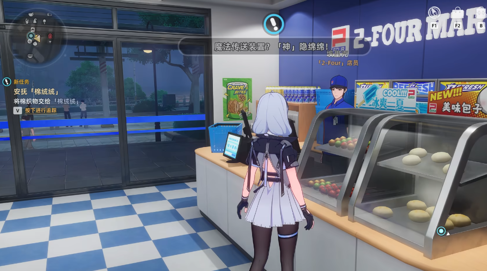 棉绒绒并非固定刷新的普通怪物,而是具有剧情绑定属性的关键互动对象。玩家需首先抵达地图中的便利店场景,与NPC【埃里克】展开对话。在完成对话并正式接取【魔法传送装置】任务后,目标才会于便利店后方的垃圾堆放区首次现身。