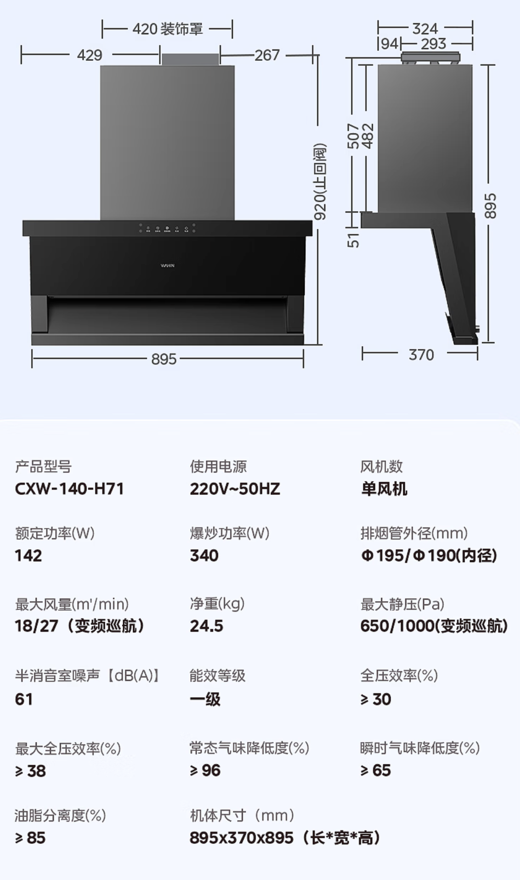 机器尺寸:895x370x895 宽 * 深 * 高 mm