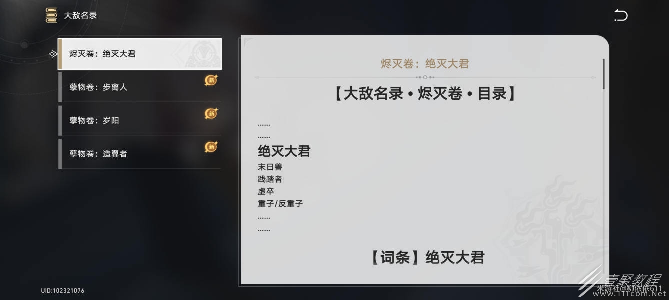 1.1版本目前发现新增了《大敌名录》(包括《孽物卷:步离人》、《孽物卷:岁阳》和《孽物卷:造翼者》)、《星槎海安全检查指南》和《星槎海进出港报告管理办法》