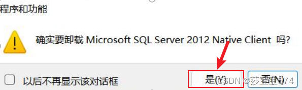 3,在程序列表中找到”Microsoft SQL Server 2012Native Client”,此项是数据库的客户端,右击选“卸载”(或双击)。