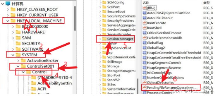 (1)找到HKEY_LOCAL_MACHINESYSTEMControlSet001ControlSession Manager,删除右边”PendingFileRenameOperations”这一项。