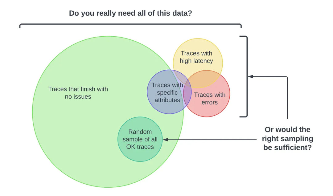 可以告诉 OpenTelemetry 根据要发送的追踪/流量的数量执行采样。(比如只采样 10% 的追踪数据)。