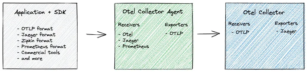 OTLP 是代理(配置为导出器)和收集器(配置为接收器)之间的通信。