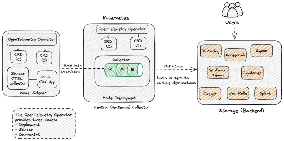 OpenTelemetry 收集器可以通过不同的方式进行部署,所以我们要考虑下如何部署它。具体选择哪种策略取决于你的团队和组织情况。