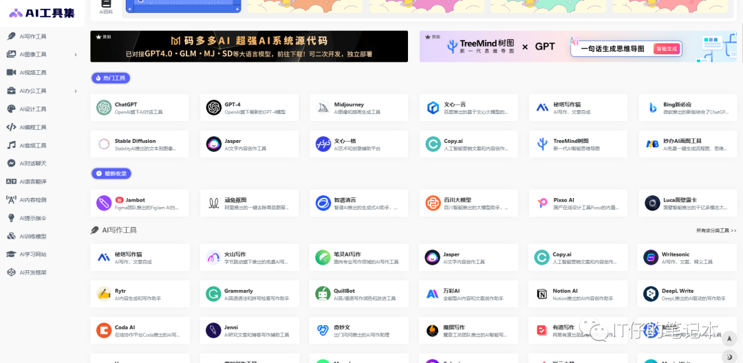 功能:Al写作工具、AI图像工具、AI视频工具、AI办公工具、AI设计工具、AI编程工具、AI音频工具、AI对话聊天、AI语言翻译、Al内容检测、AI提示指令、Al训练模型、AI学习网站、Al开发框架