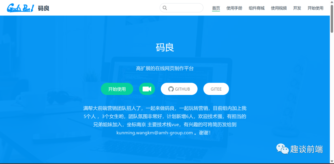 码良是一个在线生成H5页面并提供页面管理和页面编辑的平台,用于快速制作H5页面。用户无需掌握复杂的编程技术,通过简单拖拽、少量配置即可制作精美的页面,可用于营销场景下的页面制作。同时,也为开发者提供了完备的编程接入能力,通过脚本和组件的形式获得强大的组件行为和交互控制能力。