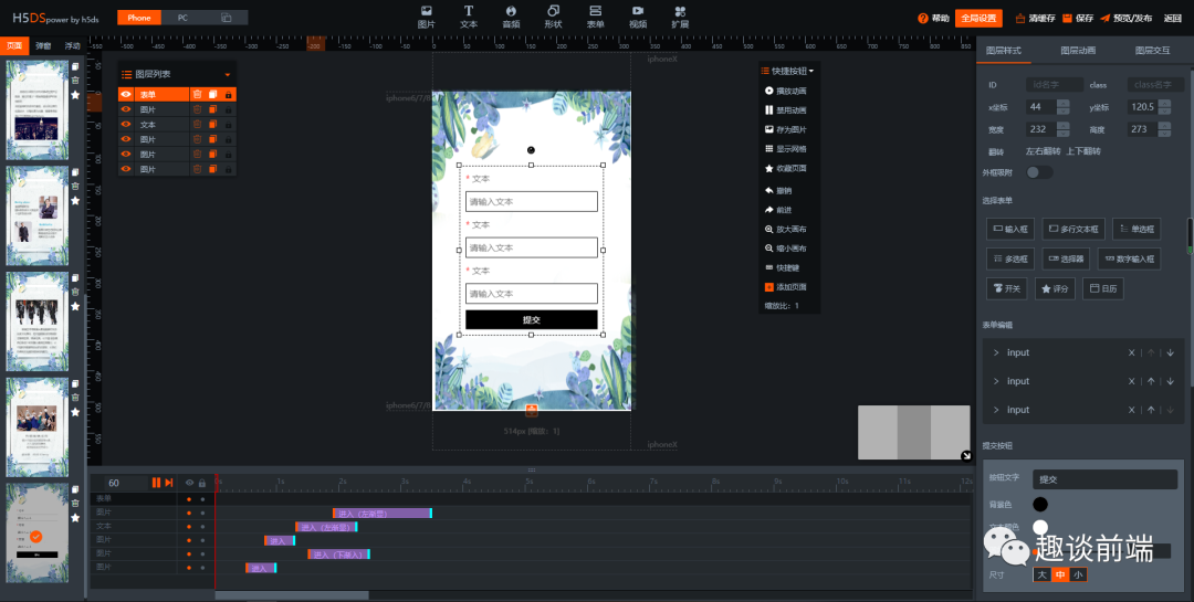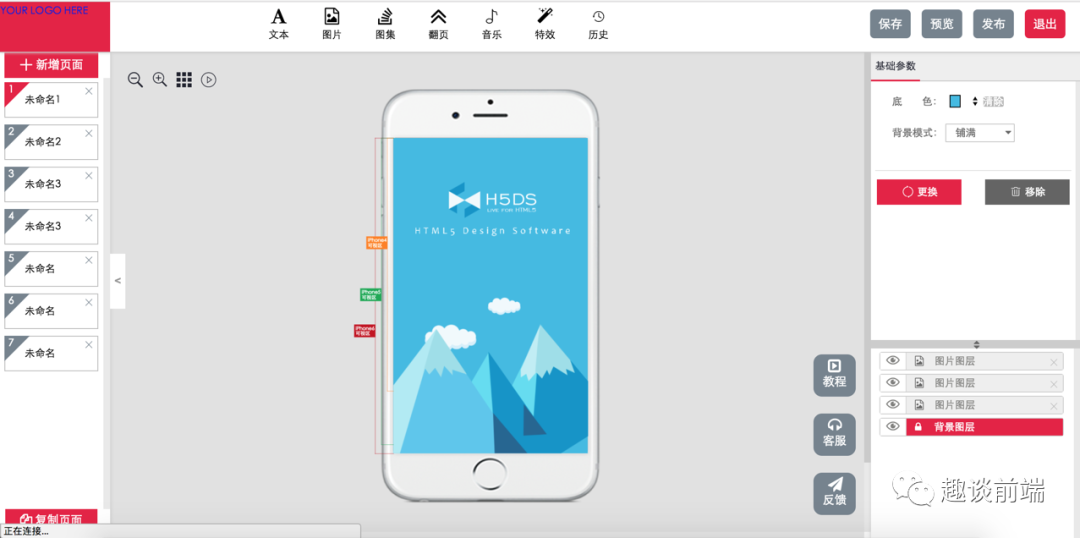H5DS(HTML5 Design software) 这是一款基于WEB的 H5制作工具。让不会写代码的人也能轻松快速上手制作H5页面。