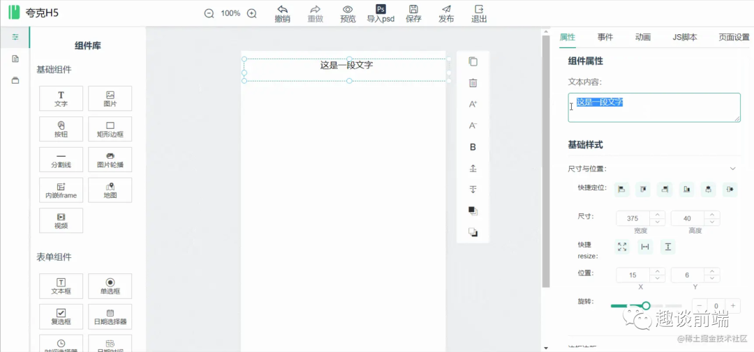 参考线/参考线吸附线通过拖放更改插件形状编辑元素(画布)复制元素(画布)删除元素(画布)编辑页面复制页面删除页面快速预览撤消、重做插件系统2、【发短信】